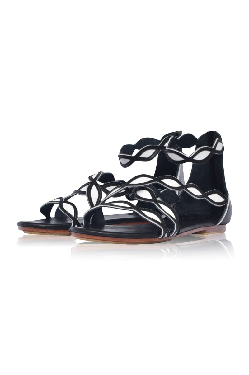 Blossom Leather Sandals in Black and White