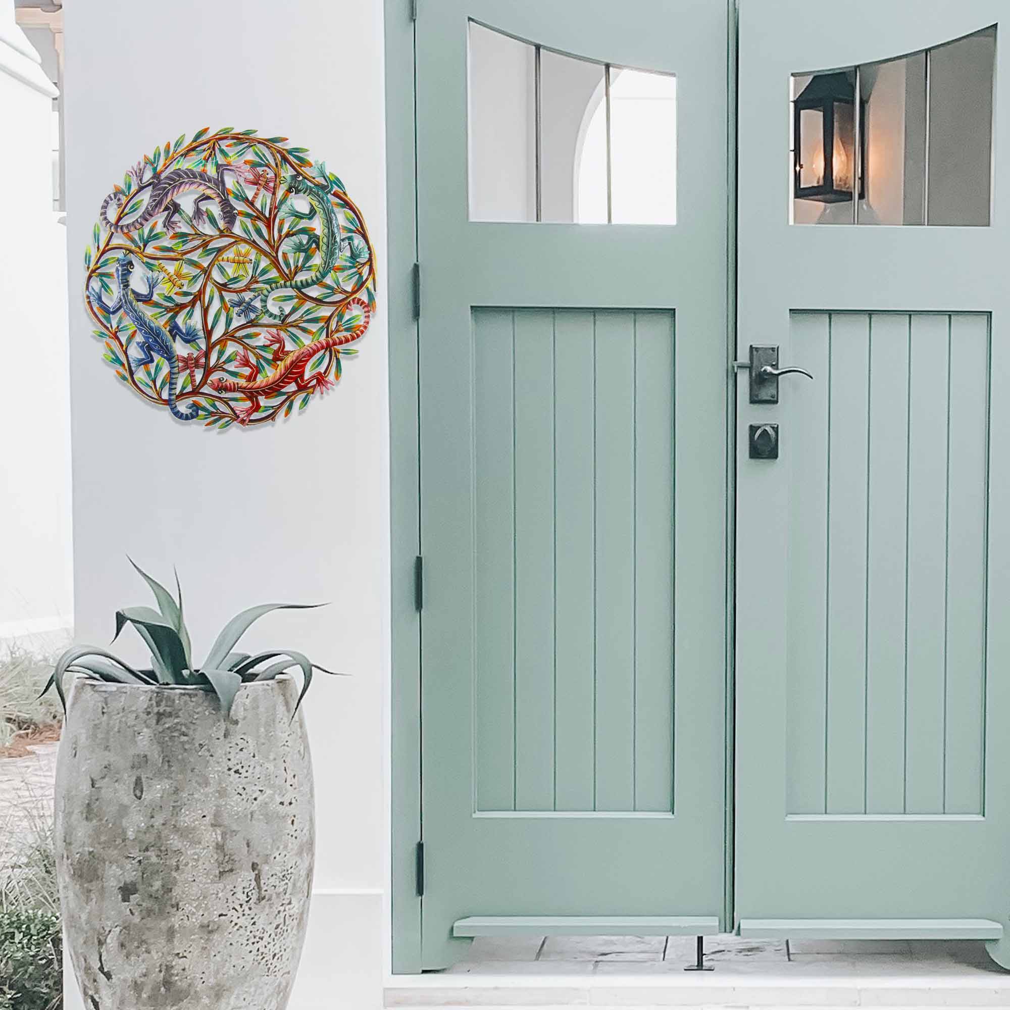 Four Geckos Haitian Metal Drum Wall Art, 24"