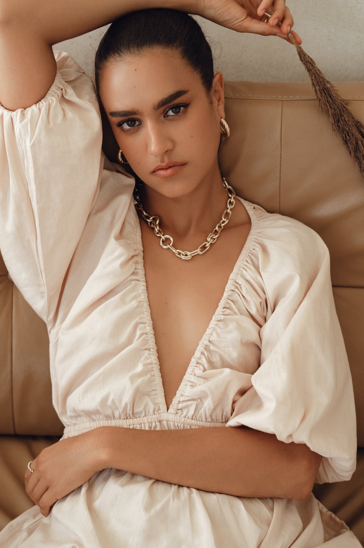 Handcrafted from soft and breathable cotton our Kezas maxi dress is detailed with elasticated V-neckline, shirred waist and voluminous sleeves for a romantic look. Handmade into a maxi silhouette it moves effortlessly with every step.