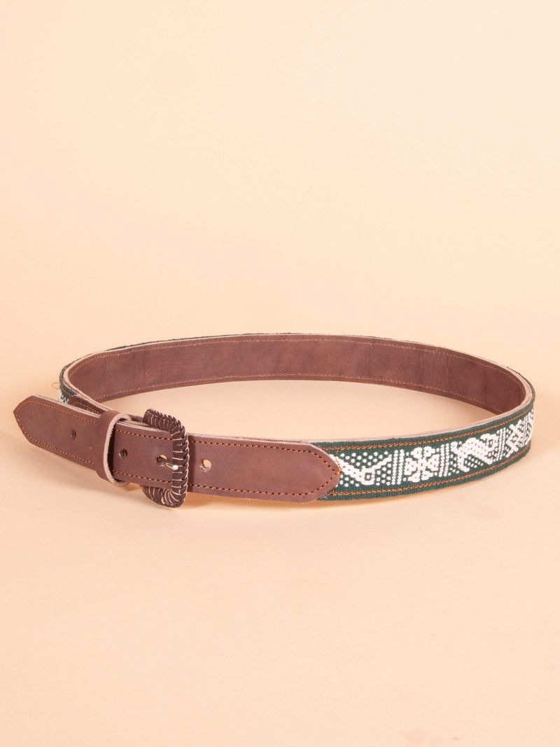 • These beauties are made by hand in Oaxaca, Mexico with fine tanned leather and hand woven textile. The leather is durable for long term wear and will acquire a nice aged look over time. Meant to be shown off. We'd recommend styling this belt with a single color tucked in button down to dress us a casual look. Stiching is done by machine. Has five holes to adjust the sizing as needed.