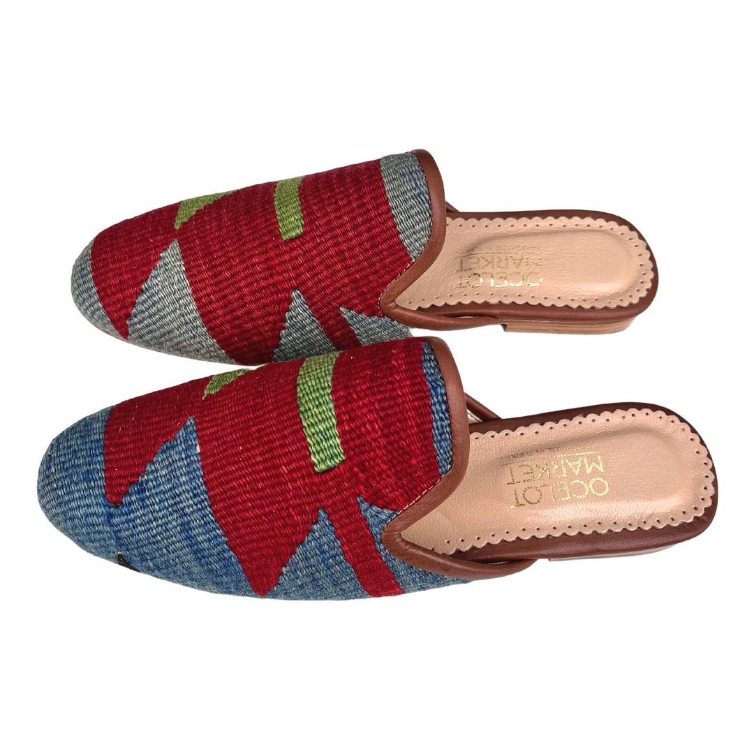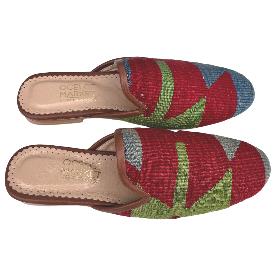 Women's Turkish Kilim Mule Red, Blue & Green 9 US/40 EU