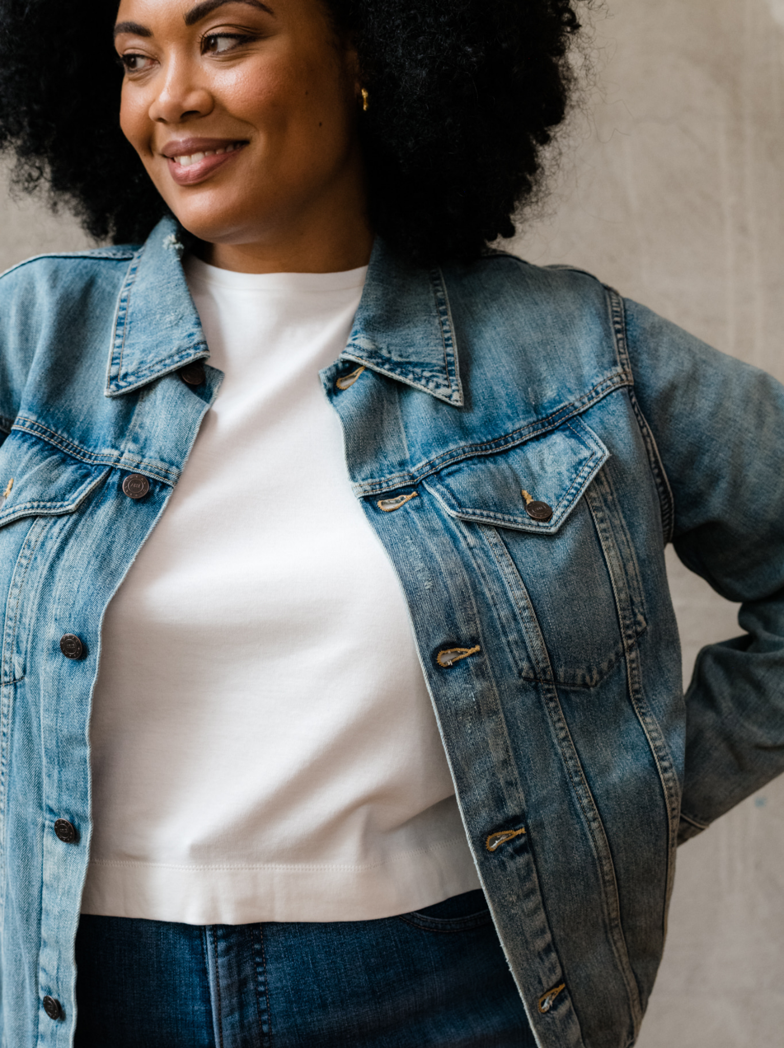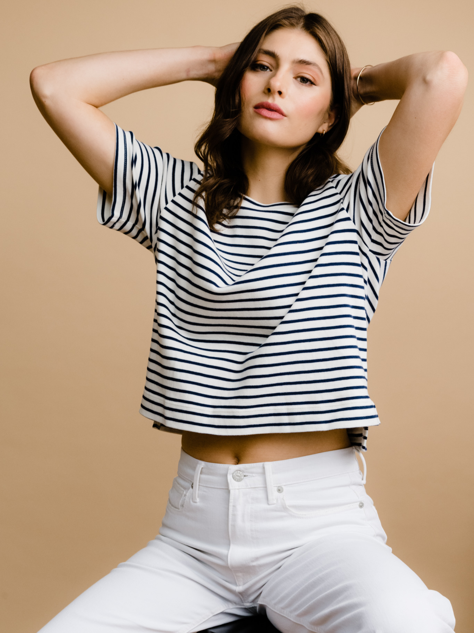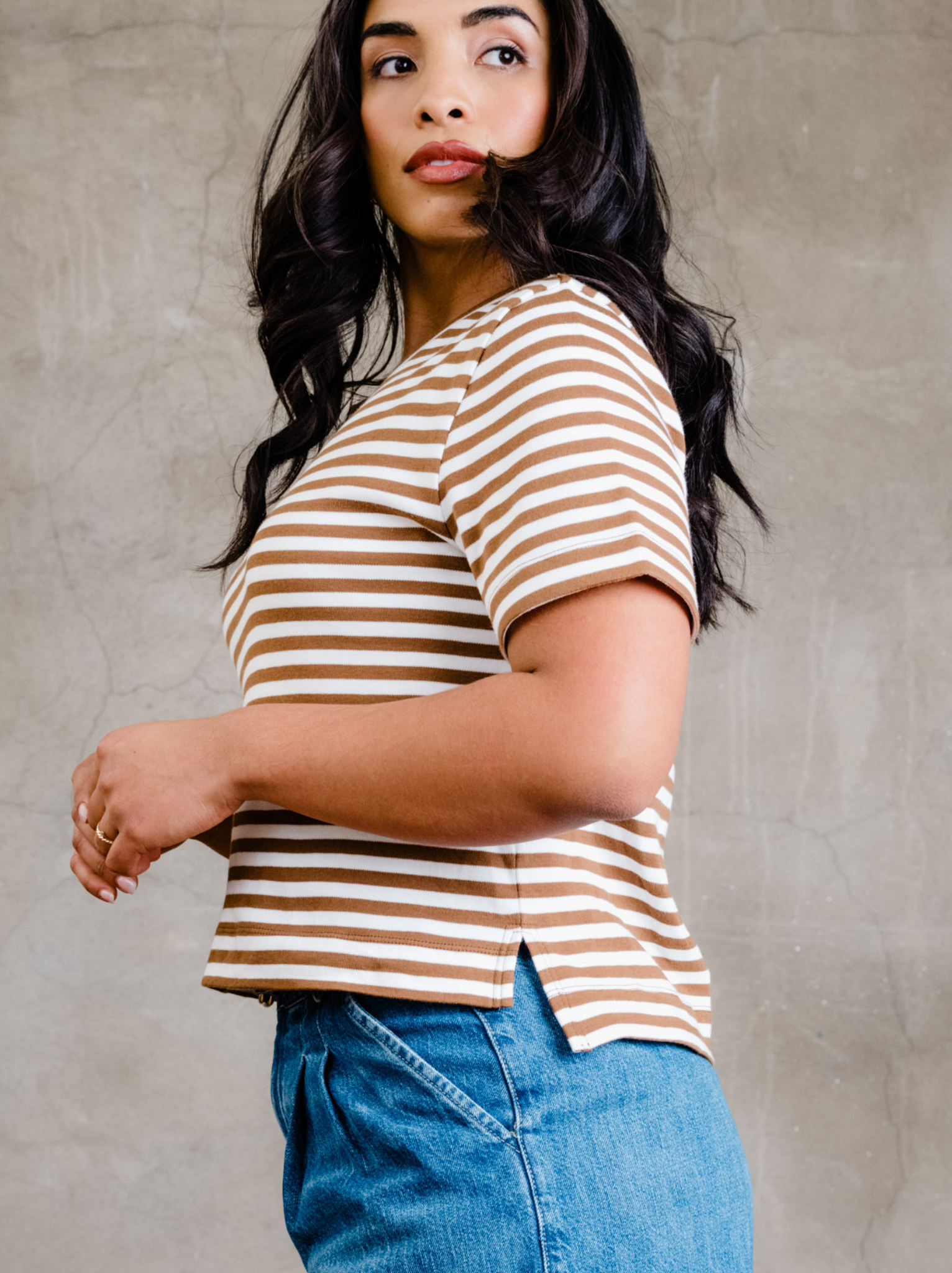 This short sleeve crew neck is boxy yet flattering thanks to its slight crop. Maria is made from 100% organic cotton with a structured fit. Pair with high waisted bottoms for the perfect balanced outfit.