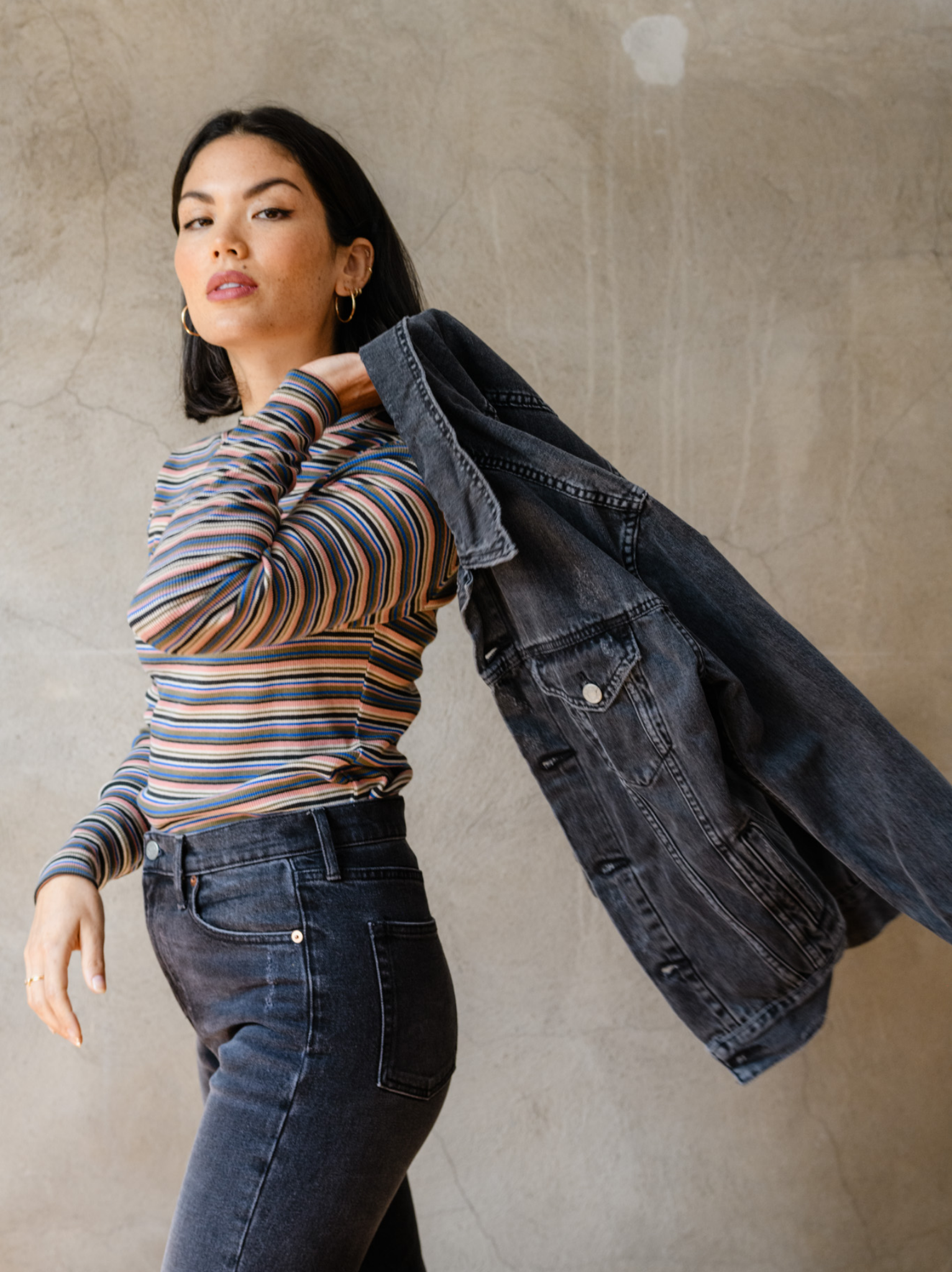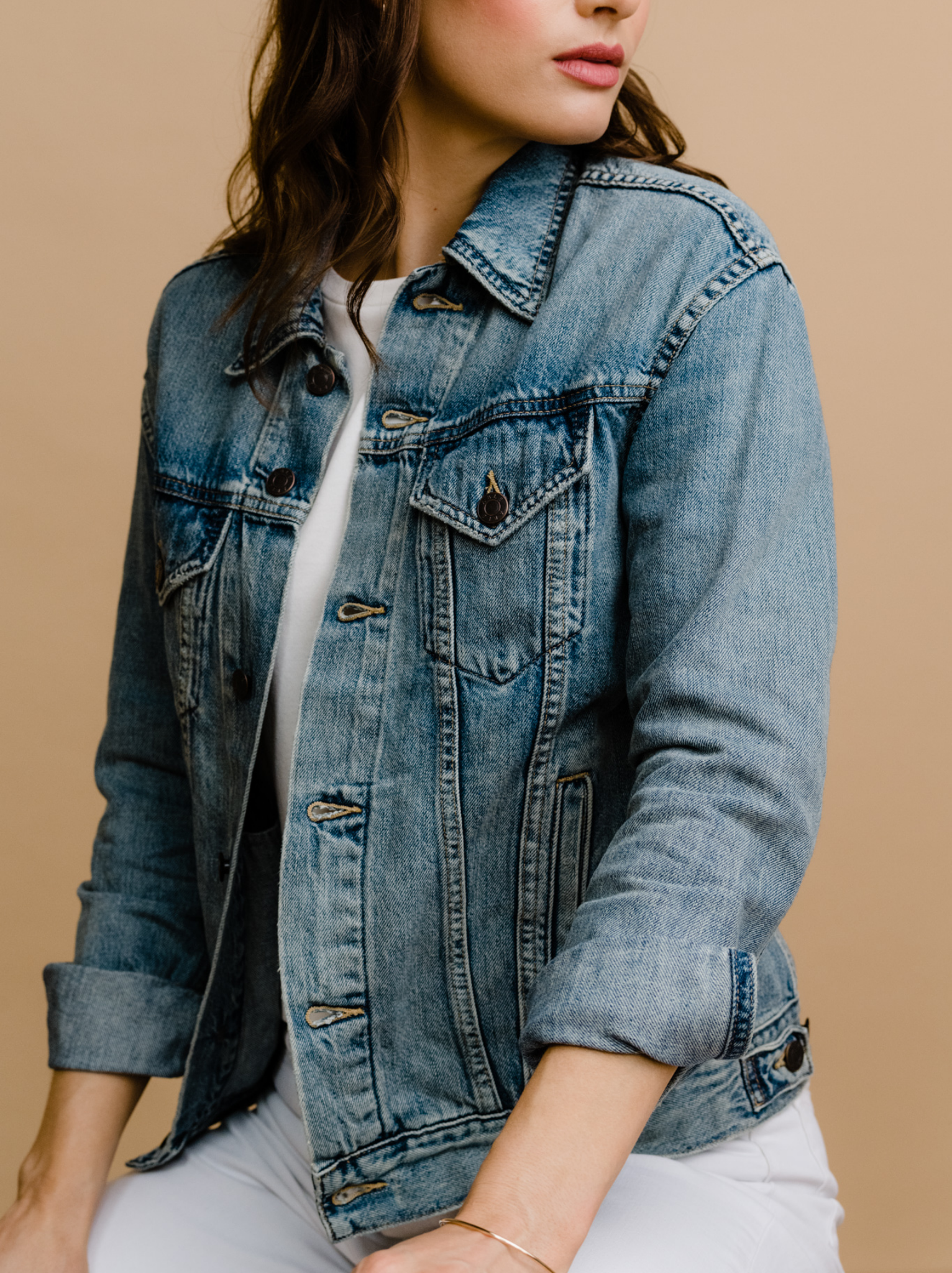 The first denim jacket we designed, and the last one you’ll ever have to buy. Our best-selling Merly jacket is a timeless closet staple made from buttery soft materials that give it that “broken-in” feel from the very first wear. Launched in 2017 and updated in 2022 with a new and improved fit, this ABLE Signature piece is sure to be your go-to for years to come.