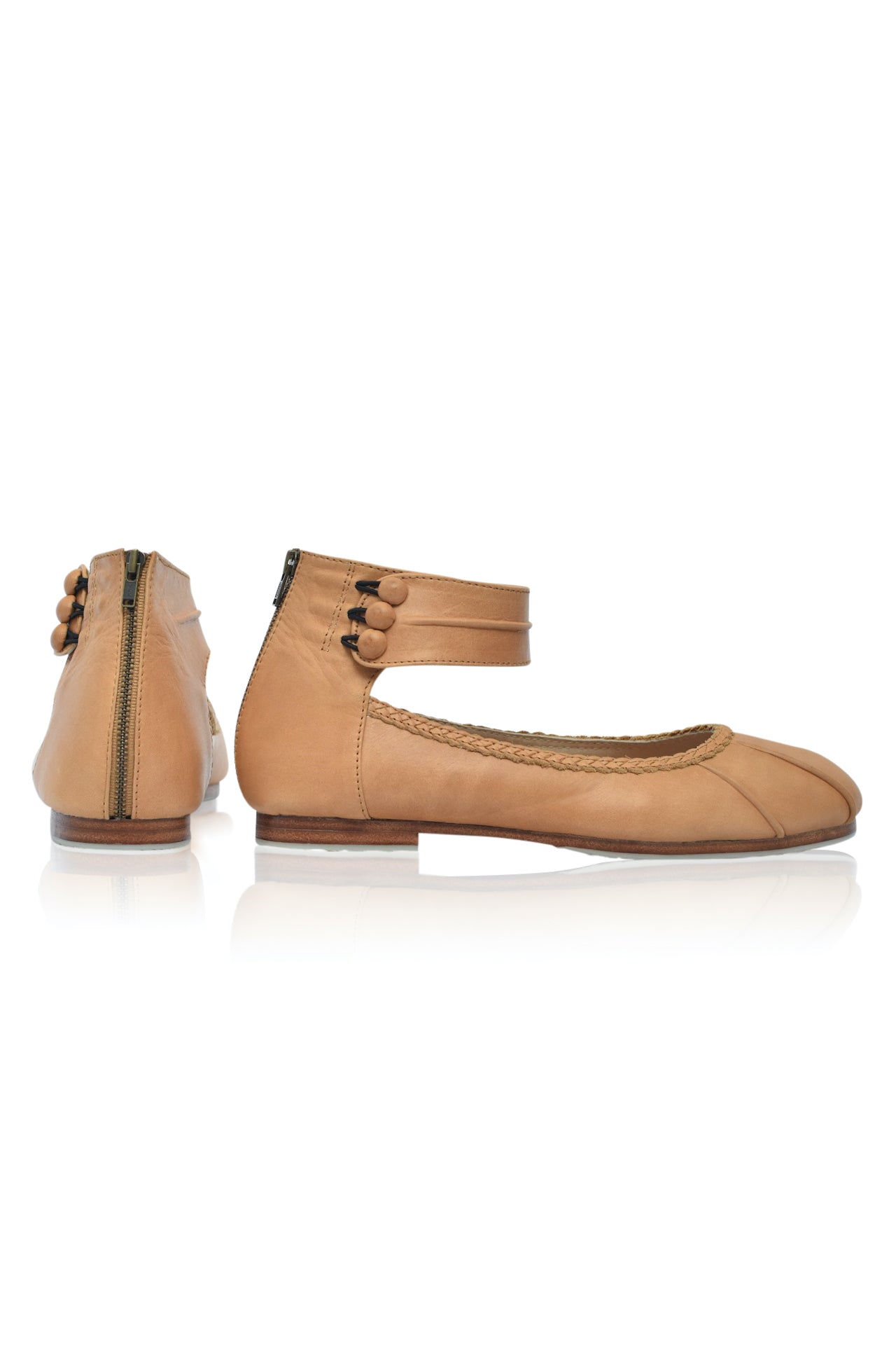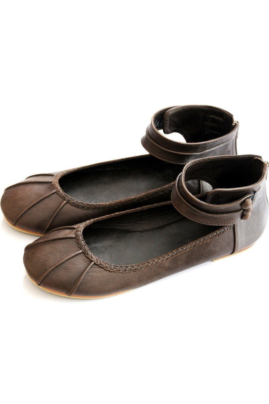 Leather ballet flats with cuff. Zip up the back. Super comfy!